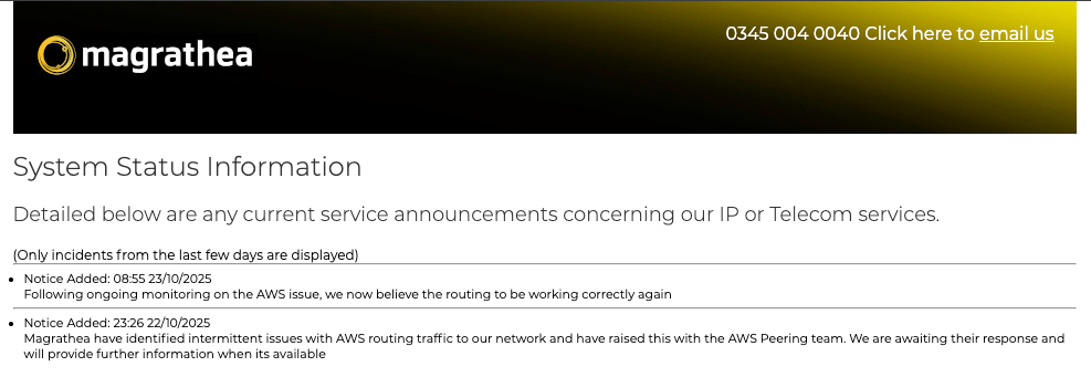At the opposite end of the scale we have Magrathea. We wouldn’t normally name them but frankly I’ve had enough of their pious bullshit. Their “status page” has always been a joke, looking statically maintained with zero history. We are limiting quotes in this blog to what has been put out in the public domain (which is little), but suffice to say Magrathea’s post-incident reports are comical. They range from absolutely no insight into the root cause of the issue, to codifying a complete lack of awareness of the most basic tenets of the prevailing security legislation.